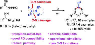 An I2 Mediated Aerobic Oxidative Annulation Of Amidines With Tertiary Amines Via C H Amination C N Cleavage For The Synthesis Of 2 4 Disubstituted 1 3 5 Triazines Organic Biomolecular Chemistry Rsc Publishing